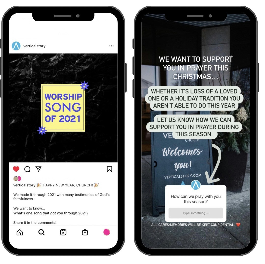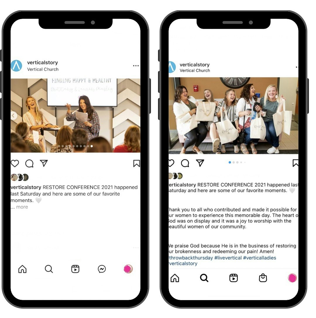 Vertical Church hired me to take over their social media channels. The Church was only eight years old but struggled to interact and effectively utilize Instagram and Facebook for critical news, updates, and community life. Vertical's goals included revitalizing its digital community and creating an impact on social media with unique content that positively reflected its mission of "loving others toward God."